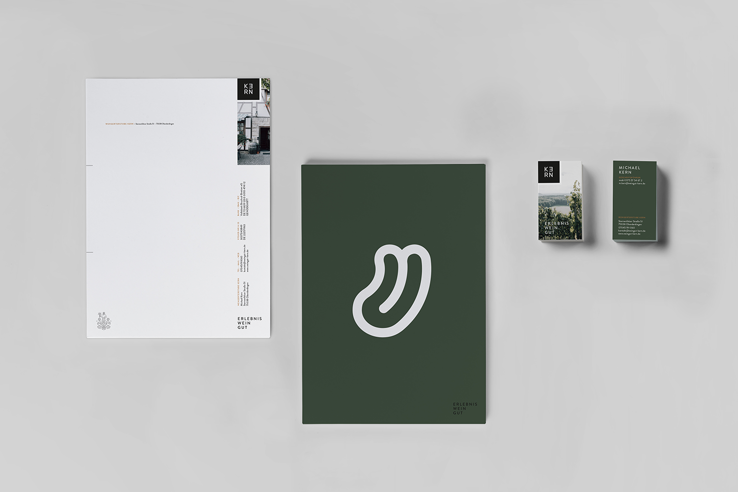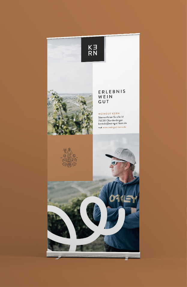 Das Weingut Kern in Oberderdingen ist mehr als ein klassischer Weinbetrieb. Neben regionalem Weinbau betreibt der Winzer eine Pension und veranstaltet regelmäßig Events. Wir haben gemeinsam ein Erscheinungsbild entwickelt, das diese Vielfalt visuell zusammenbringt.