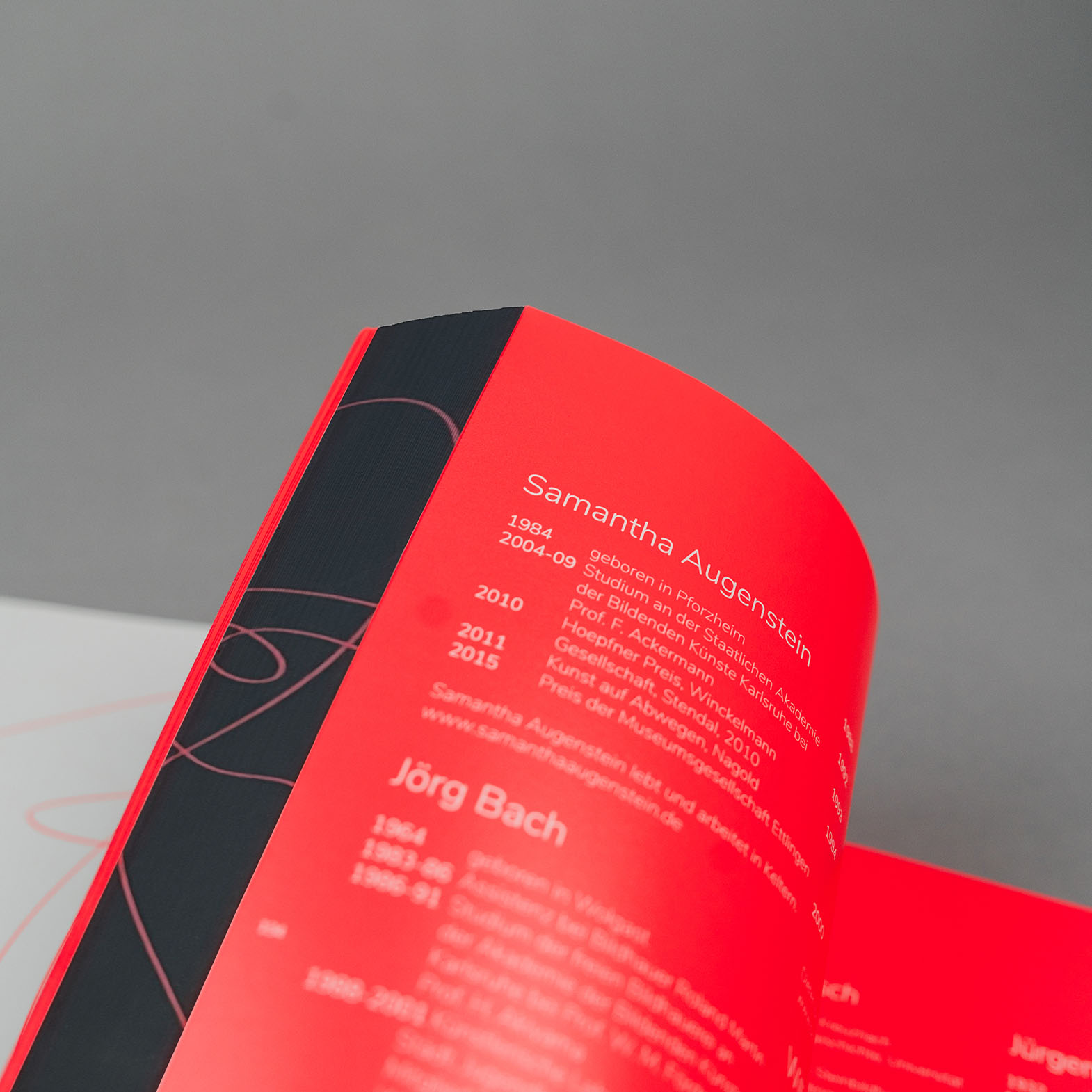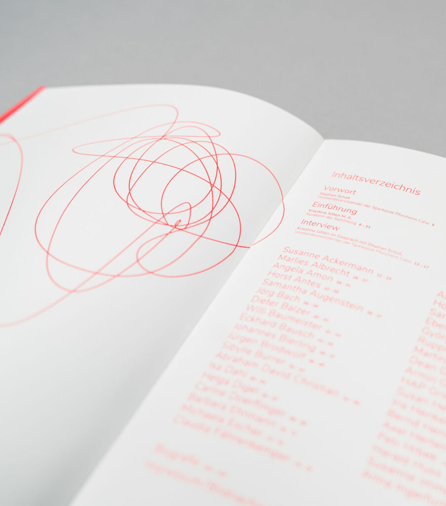 Für die Stiftung der Sparkasse Pforzheim Calw zur Förderung regionalen Kunstschaffens durften wir das Editorial Design für die beiden Bildbände umsetzen: zurückhaltend, hochwertig und mit einem roten Faden, der sich buchstäblich durch das gesamte Projekt zieht.